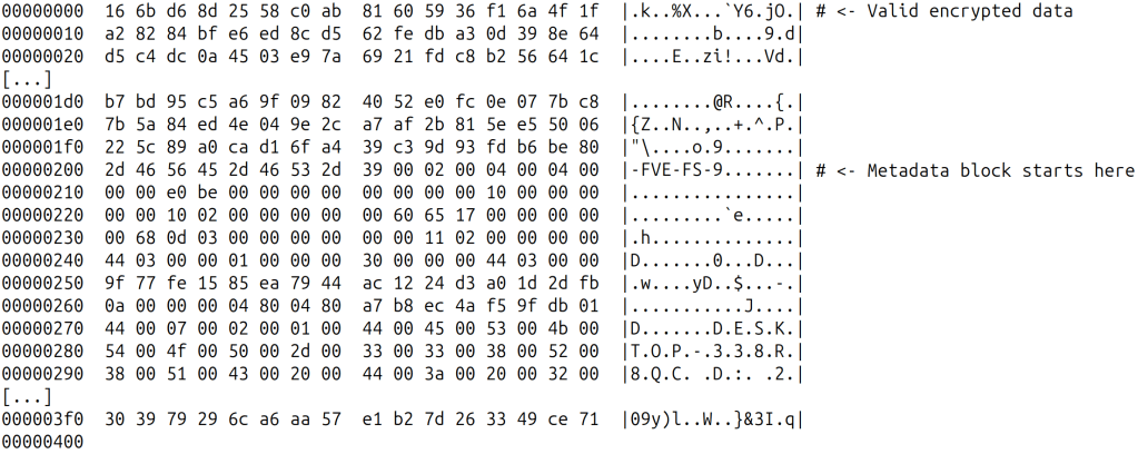 3. Some disk encryption implementations use interleaved unencrypted metadata to describe encrypted volumes.